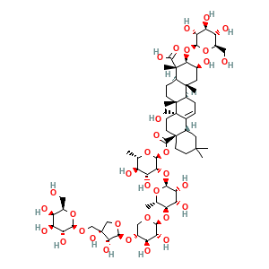 CC1C(C(C(C(O1)OC(=O)C23CCC(CC2C4=CCC5C(C4(CC3)CO)(CCC6C5(CC(C(C6(C)C(=O)O)OC7C(C(C(C(O7)CO)O)O)O)O)C)C)(C)C)OC8C(C(C(C(O8)C)OC9C(C(C(CO9)OC1C(C(CO1)(COC1C(C(C(C(O1)CO)O)O)O)O)O)O)O)O)O)O)O